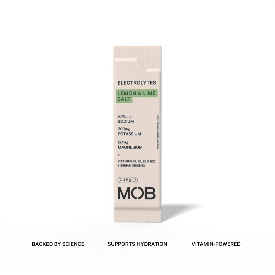 MOB Electrolytes are formulated with these three minerals in science-backed ratios to help replenish what’s lost through sweat. In this article, we break down what’s actually happening when you sweat, why water alone isn’t enough, and why we’ve chosen to include 1000 mg sodium, 200 mg potassium, and 60 mg magnesium in every sachet.